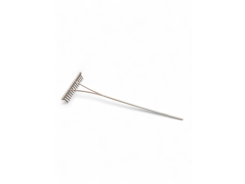 Dřevěné hrábě KRUMPHOLZ. Šířka záběru hrábí 50 cm s 9 cm zuby v počtu 15, celková délka 160 cm. Hrábě váží 0,7 kg.
